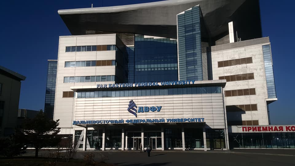 루스키섬에는 극동연방대학(Far Eastern Federal Univercity, Д.В.Ф.У)이 있다. 최초로 한국학 단과대학이 들어선 곳이다. 마침 발렌티나도 20여 년 전 한국학 대학에서 한국경제를 전공했단다. 초승달 모양의 만을 따라 배치한 캠퍼스 자체가 볼거리이다. 2012년 APEC회담을 시작으로 매년 가을에 동방경제포럼이 열리는 곳이기도 하다. 빼어난 경치를 바라보며 러시아어를 익히고, 동북아를 조망하는 꿈을 그려보기에 안성맞춤인 곳이다. 건물 내부를 보고 싶었으나 외부인은 건물 출입이 안된단다. 어학연수반을 알아보겠다는 핑계로 졸업생 발렌티나의 힘을 빌려볼까 했지만 역시나 거절당했다.